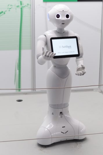 Barnen trängs helst framför den fransk-japanska roboten Pepper. Den har de smidigaste, mest människolika händerna. Dess inspelade röst, barnvänligt pipig som en skådespelare på helium, uppmanar besökarna att ta kontakt genom att ta den i händerna eller göra fistbumps. Det svåra, när jag tittar på Pepper, är att se vad jag faktiskt ser. Redan genom att den här produkten kallas robot – mer än 10 000 Peppers har sålts – bäddas den in i fantasier, förväntningar och föreställningar som sträcker sig långt bortom vad den kan och inte kan göra. När du tittar på Pepper ser du inte ett stycke plast och elektronik, du ser framtiden. Skulle du lyckas klä av Pepper och de andra robotarna den decimetertjocka aura av förväntningar som omger dem, finns en risk att det som blir kvar kommer att påminna om en sådan där cymbalspelande apa med en skruv i ryggen, som barn kunde få i julklapp på 1950-talet.